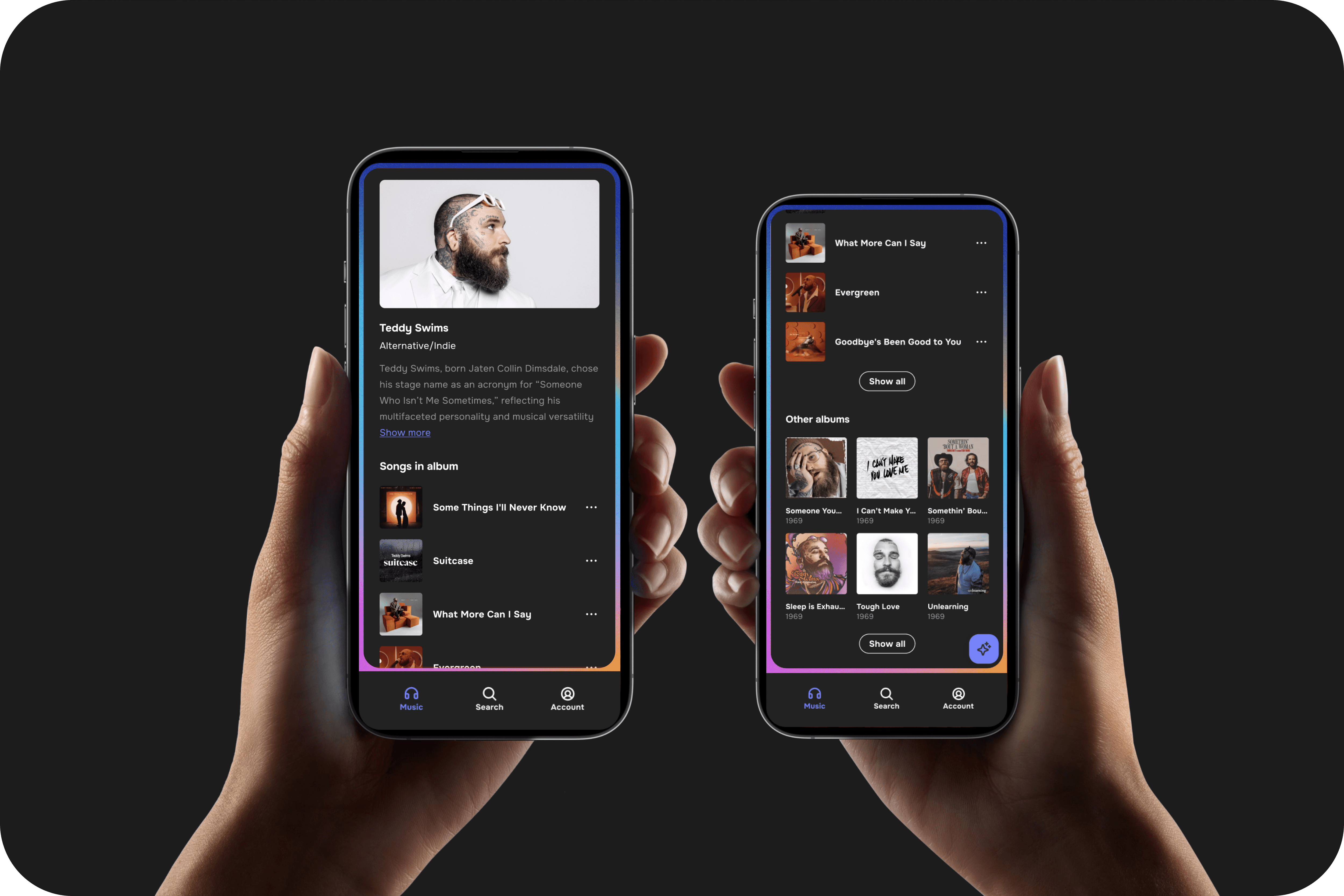 This system made it easy to layer in AI-driven features, like smart recommendations and mood-based playlists without crowding the interface.